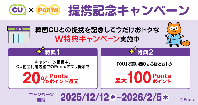 [2025/12/15]【新規提携社】韓国の大手コンビニエンスストア「CU」でPontaポイントがたまる・つかえるサービスを開始